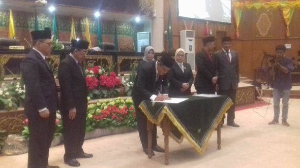 PLT Gubernur Riau yang diwakili Sekda Ahmad Hizazi saat menandatangani penyerahan LHP BPK RI tahun 2017