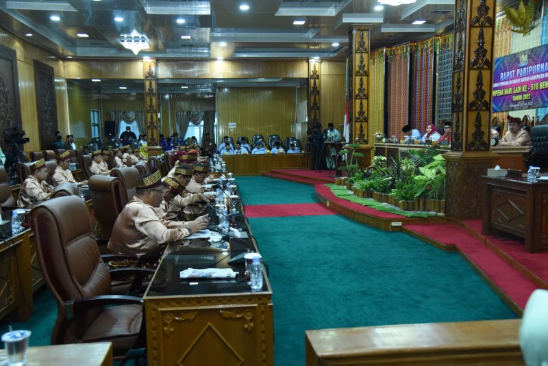 Bengkalis - DPRD Kabupaten Bengkalis melaksanakan Rapat paripurna Hari Jadi Kabupaten Bengkalis yang ke-510 Tahun 2022 dengan tema "Bengkalis Sinergi Bermasa", bertempat di ruang Paripurna DPRD Kabupaten Bengkalis, Sabtu (30/07/2022).